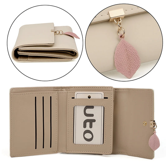 Small Wallet for Women PU Leather RFID Blocking Card Holder Zipper Coin Purse with Leaf Pendant(Khaki)
